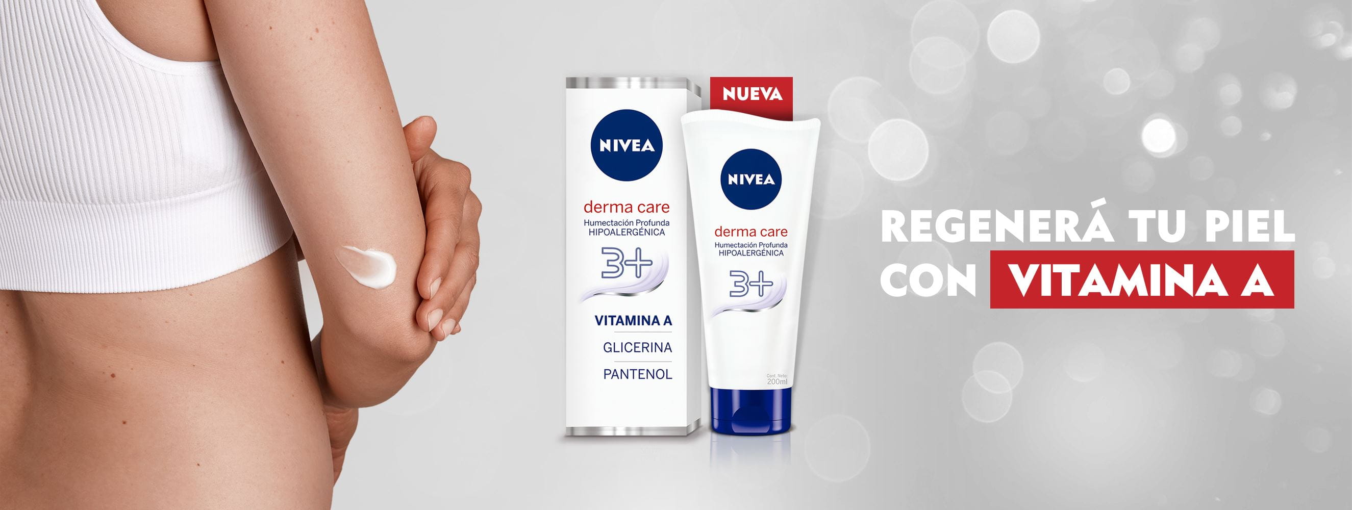 La nueva NIVEA DERMA CARE contiene Vitamina A que interviene en la formación y regeneración de las células, y repara aquellas que están dañadas. Además, potencia sus beneficios con Glicerina y Pantenol que estimula la regeneración natural de la piel.